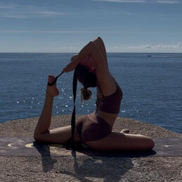 Yoga ist seit meinem neunten Lebensjahr ein prägender Teil meines Lebens.Yoga ist mehr als nur ein Sport, es ist eine ganze Philosophie. Genau das ist mir unglaublich wichtig, und ich möchte es in meine Stunden und in meine Social-Media-Präsenz miteinbringen.Tatsächlich sind die Asanas, also die Yoga-Posen, das uns am meisten Bekannteste am Yoga. Etwas, das erst sehr spät auf meinem persönlichen Yogaweg aufgetaucht ist. Für mich ist Yoga ein stetiger Begleiter, immer und überall. Yoga wird nicht „nur“ auf der Matte praktiziert. Genau das möchte ich in meinen Stunden vermitteln: Ich versuche, Atemübungen (Pranayama), Körperposen (Asanas) und Achtsamkeitsübungen miteinzubeziehen.Als Yogalehrerin ist es mir sehr wichtig, dass die Asanas korrekt ausgeführt werden, um Fehlbelastungen des Körpers vorzubeugen. Ich gebe deshalb sehr gerne Ajustments, also physische Anpassungen, in meinen Stunden, sei es, um Positionen zu verbessern oder meine Schüler:innen tiefer in die Positionen zu begleiten.Ich möchte in unserer gemeinsamen Zeit einen Ort für dich, deinen Körper, deinen Geist und deine Seele schaffen.Ich freue mich sehr, dich kennenzulernen.